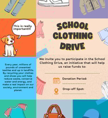 This is more than just a fundraiser — it’s a chance for your school to lead by example in protecting the environment. Every year, millions of pounds of unwanted textiles end up in landfills. By organizing a clothing drive, your students and staff will help reduce waste, conserve water and energy, and make a real impact on our planet. Last but not least, we will pay you for every pound collected and you can use the funds for school events, field trips, equipment, other projects, or anything else - this is up to you
